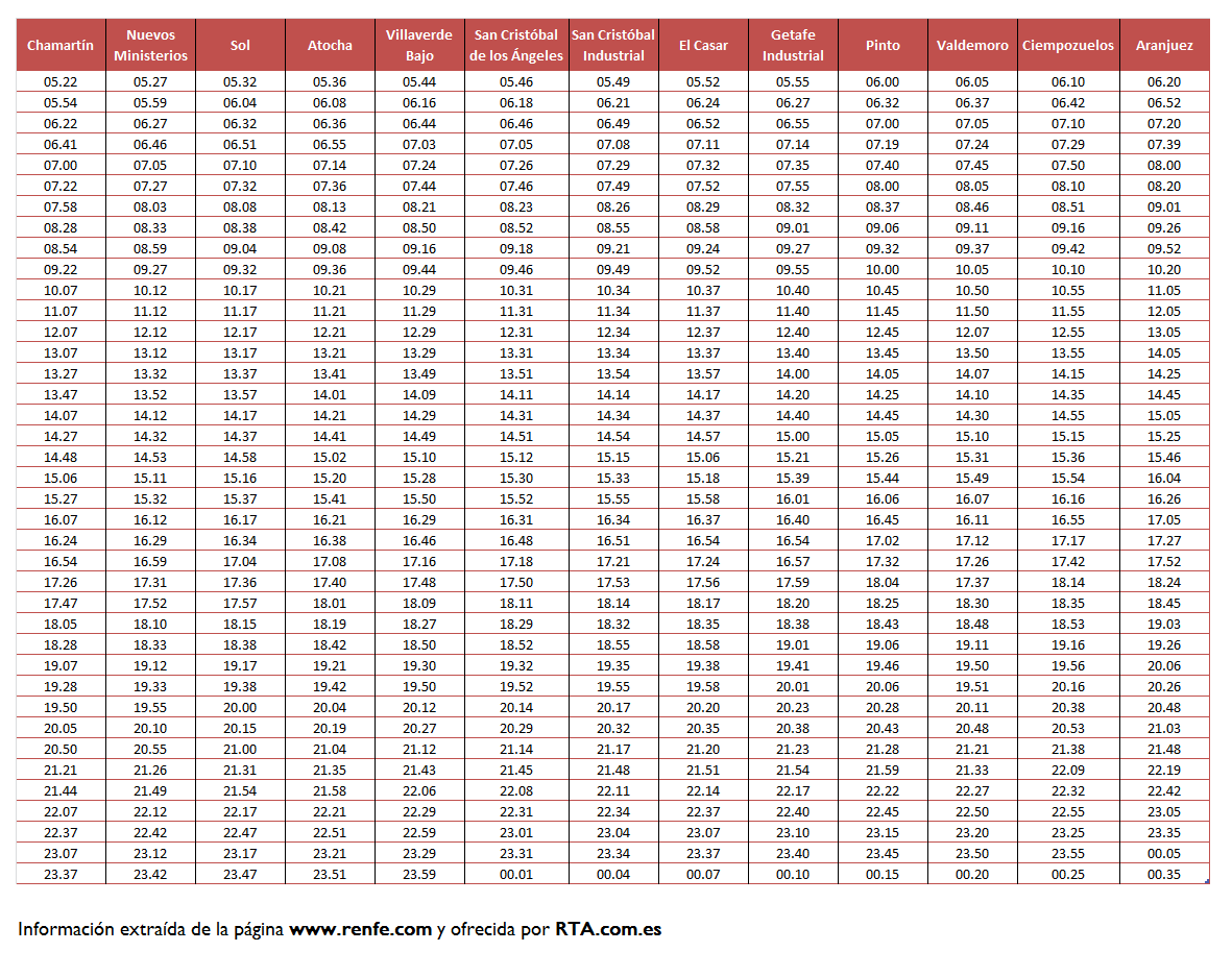 Servicios mínimos establecidos en línea C-3 de Cercanías Madrid